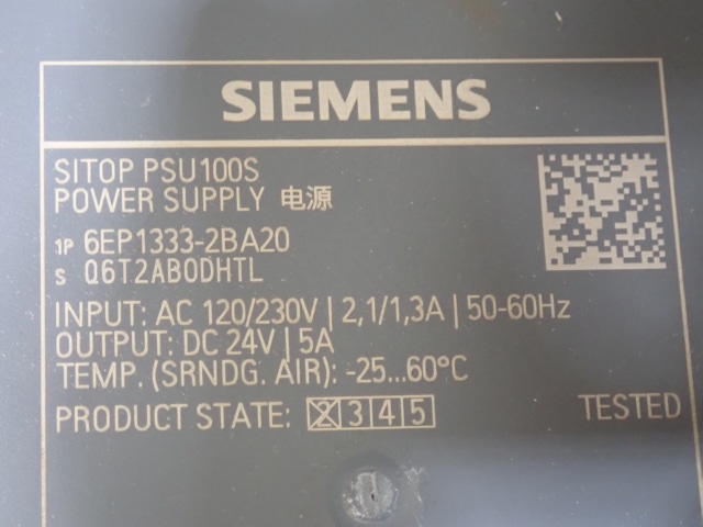 Блок питания SIEMENS 6EP1333-2BA20 DC24V/5A Made in Austria без оригинальной упаковки вес-0.4кг габаритный размер 180х160х70мм цена товара 55евро указана за одну штуку 1шт