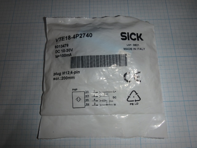 Фотоэлектрический датчик sick 6013479 vte18-4p2740 в цилиндрическом корпусе made in italy габаритный размер-130х130х20мм вес-0.1кг цена товара 146евро указана за одну штуку 1шт