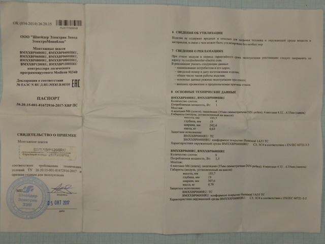 ШАССИ Schneider Electric BMXXBP1200RU НА 12 ПЛАТОМЕСТ 109039 Сделано в России вес-1.36кг габаритный размер-580х150х65мм цена товара 313евро указана за одну штуку 1шт