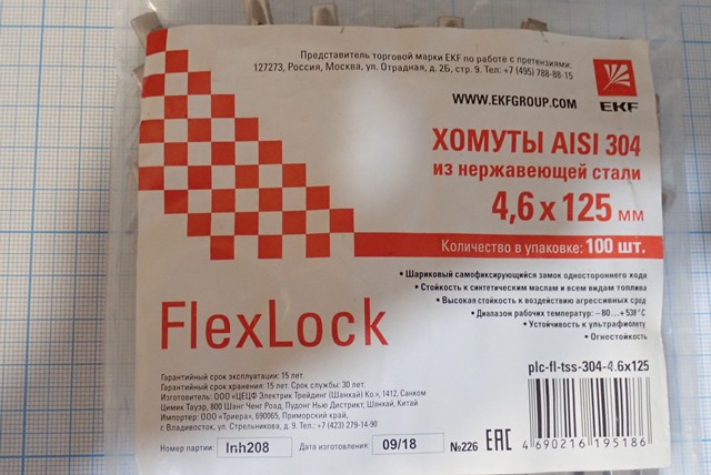 Хомут EKF AISI304 4,6х125mm plc-fl-tss-304-4.6х125 100шт в одной упаковке вес-0.18кг габаритный размер 160х130х20мм цена товара 8евро указана за одну упаковку 1уп