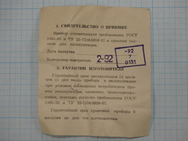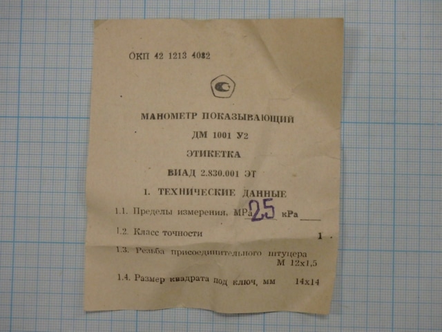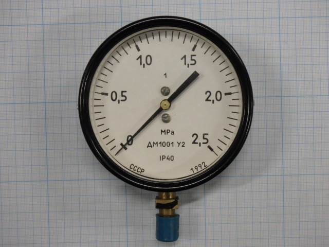 Манометр показывающий ДМ1001 У2 пр.изм.0-2,5МРа.кл.т.1,0.1992г.в. цена товара 2евро указана за 1шт