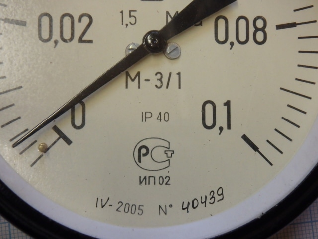 Манометр М-3/1 0-0.1МПа IP40 2005г.в класс точности 1.5 диаметр Ф100мм