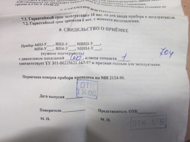 [Манометр показывающий ДМ1001 У2 пр.изм.0-1,6МРа.кл.т.1.199 ...]