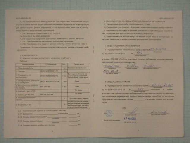 Преобразователь измерительный САПФИР-22МПС-ДГ-Ех-2530-02-У2-0.25-25кПа-4-42-HART-ГП гидростатическог