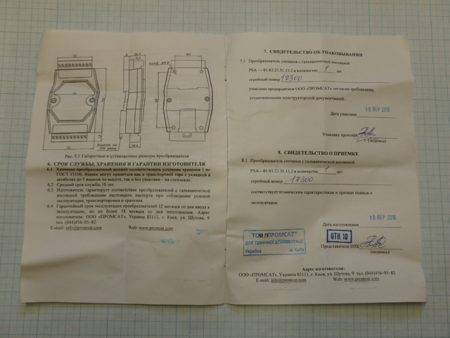 Преобразователь сигналов psa-01.03.23.31.11.2 promsat промсат ip20 с гальванической изоляцией
