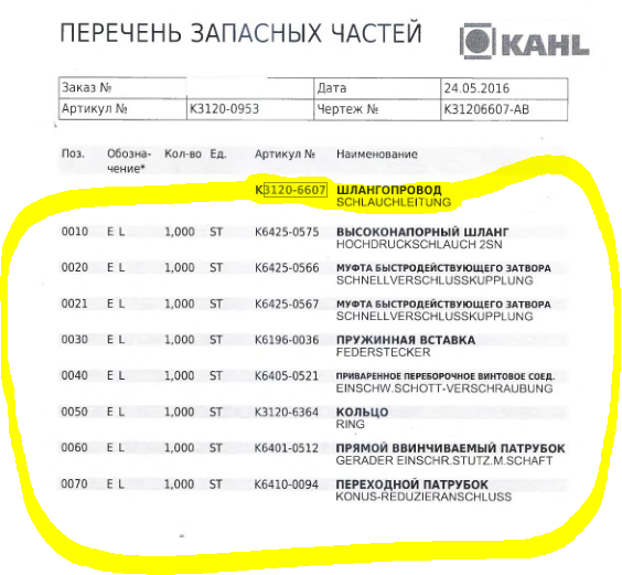 Шлангопровод KAHL K3120-6607 МАСЛА SCHLAUCHLEITUNG пресса гранулятора сухого жома KAHL PRESSE 39-1000 вес-0.88кг габаритный размер 750х100х100мм цена товара 446евро указана за одну штуку 1шт