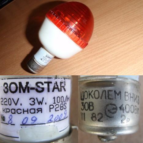 Заградительные огни светодиодные красного цвета ЗОМ-STAR 220V 3W 100Лм Р28S