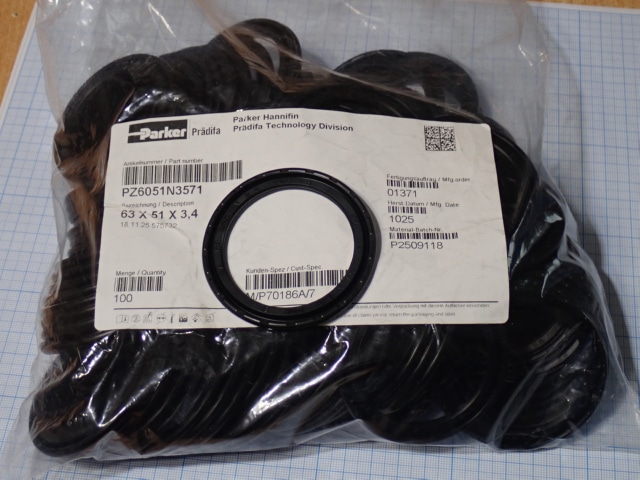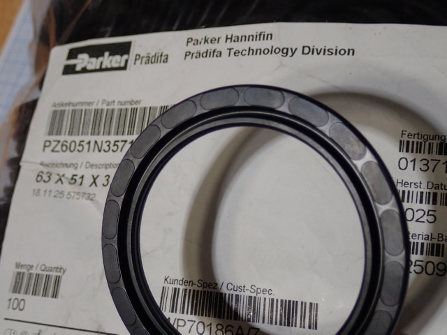 Уплотнение поршня Parker Pradifa 63х51х3.4 PZ6051N3571 вес-0.005кг габаритный размер 65х65х5мм цена товара 20евро указана за одну штуку 1шт