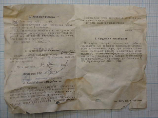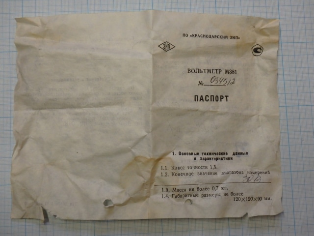 Вольтметр М381 30В кл.т.1.5 120х120х82мм 1981г.в. цена товара 5евро указана за 1шт